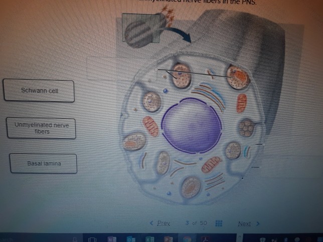 Correctly label the structures associated with unmyelinated nerve fibers in the pns.. Ch 14 Flashcards | Chegg.com Describe the main steps in the regeneration of a nerve fiber. Describe a typical chemical synapse in reference to its microanatomy and the role of the neurotransmitters. Define the following terms and correctly match with either the CNS or PNS: ganglia, nerve, center (or nucleus), tract (or fascicle), and column. Which of the following are effectors a receptors b A) Receptors B) Stimuli C) Reflexes D) Glands E) Sense organs. 19) What is another name for the autonomic nervous system? A) Visceral sensory division B) Somatic sensory division C) Visceral motor division D) Somatic motor division E) Central nervous system. 20) Nerves are __________ of the nervous system. A) organs. Myelin Sheath: What They Are, Their Function, & Damage From MS - WebMD The myelin sheath wraps around the fibers that are the long threadlike part of a nerve cell. The sheath protects these fibers, known as axons, a lot like the insulation around an electrical wire ... If a neuron is prevented from sending a neurotransmitter across a ... A)A Schwann cell folds its plasma membranearound several fibers. B)A Schwann cells wraps its plasma membranearound each individual fiber as it does with myelinated fibers. C)An oligodendrocyte cells wraps its plasmamembrane around each fiber as it does with myelinated fibers. D)Satellite cells cluster around each axon to form apseudo-myelin sheath.