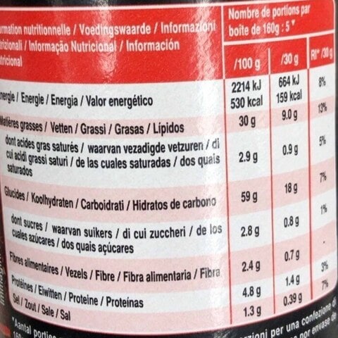 Pringles nutrition label
