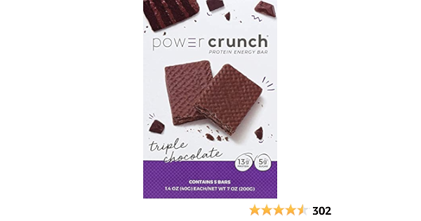 Power Crunch ORIGINAL Protein Energy Bar Triple Chocolate, 7 oz, 5 ... Power Crunch is the original wafer cream protein energy bar with an irresistible crunch. With these bars you don't have to pick between a snack that is delicious and a snack that serves your body well. •13g of super protein, only 5g of sugar, and NO sugar alcohols •Light wafer texture, big crunch •Alluring triple chocolate flavor •5 protein bars