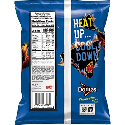 › products › new-doritos-flamin-hotNEW! DORITOS®️ FLAMIN' HOT®️ COOL RANCH®️ Introducing new Doritos ® ️ Flamin' Hot Cool Ranch ® ️ Flavored Tortilla Chips, an all-new mash-up that combines the classic Cool Ranch flavor fans love with a spicy, bold crunch. Nutrition Facts. Serving size About 12 Chips (28g) Amount per serving CALORIES 150. Fact and Amount. % Daily Value*. Total Fat 8g. 10%. Total Fat.