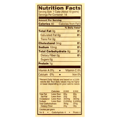 All About Quaker Rice Cakes Nutrition and Calories | livestrong This can affect your metabolism and thus your appetite, leaving you unsatisfied. Rice Cake Ingredients Ingredients include whole-grain brown rice and salt. Quaker lightly salted rice cakes are gluten-free and provide 9 grams of whole grains. As previously mentioned, the ingredients list starts to change when a flavor is introduced to the product. Rice Cakes, Plain Salted Nutrition Facts - Eat This Much Rice Cakes, Plain Salted Mother's 1 cake 35.0 Calories 7.0 g 0 g 1.0 g 0 g 0 mg 0 g 15.0 mg 0 g 0 g Report a problem with this food Find on Amazon Organic Brown Rice Cakes - Lightly Salted - Lundberg Family Farms Our rice cakes are made from freshly milled organic brown rice, popped to perfection, and carefully crafted to be thick, crunchy, and full of flavor. Enjoy them straight out of the bag or piled high with your favorite toppings! $4.49 Size 8.5 oz. Quantity - + Add to Cart Free economy shipping on all orders of $65 or more. Details Trader Joe's Brown Rice Cake Thins, Organic - Fooducate Potassium 94 mg 2% Total Carbohydrate 23 g 10% Dietary Fiber 1 g 4% Sugars 0 g 0% Added Sugars 0 g 0% Protein 3 g 6% Calcium 0 mg 0% Iron 0.36 mg 2% Vitamin D 0 mcg 0% Ingredients organic brown rice, sea salt. Comments Christian1258 Jul 14 2022 These have no flavor. It's like chewing on something that's 80% styrofoam and 20% cardboard.