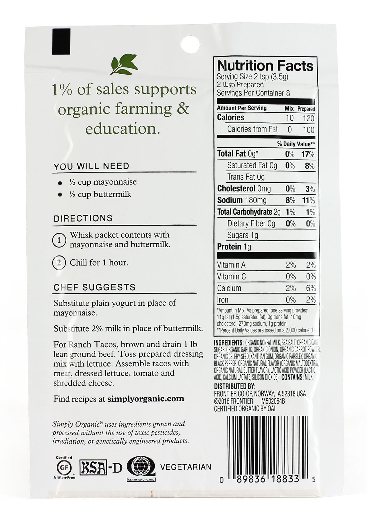 Ranch ingredients label. Your Next Move Starts Here - Stay Informed and Inspired Keeping you informed on how to handle buying, selling, renting — or just nesting at home — as we adapt to life during COVID-19. DORITOS® COOL RANCH® Flavored Tortilla Chips All products are labeled accurately with the most current ingredient information. However, we recommend that you check the label on a specific product for the most current and accurate nutritional information. If you need assistance, please contact Consumer Relations toll-free at 1-800-352-4477 Monday through Friday between 9:00 a.m. and 4:30 p ... Amazon.com : Ranch Style Canned Pinto Beans, Real Western ... You can prepare the canned beans in a saucepan on the stove top or in the microwave until hot. Try every tasty variety of Ranch Style products, including pinto beans, blackeye peas and more. Since 1935, for big, bold taste, there’s only been one place; Ranch Style. Dump Ranch | Whole Sisters I measured out all the ingredients and placed in a mixing bowl (I am in college) and blended with a hand mixer. The end product was a little watery but I was ok with that since I was planning on using it on salad and it still had an amazing taste. I placed in small mason jars and put it in the fridge. A few hours later the ranch was a great ...