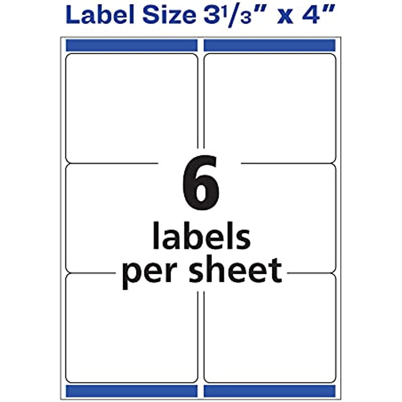 Avery Laser/Inkjet Removable Labels, 3-1/3" x 4", White, 150 Labels Per ... Multipurpose label for use on smooth surfaces. Individual label dimensions: 3.33" x 4". White rectangular paper labels for high-contrast backing to printed text. $22.99. 150/pack $0.15/Label. Delivered tomorrow. $22.99. Next -Day eligible. Order within 8 hrs 49 mins.
