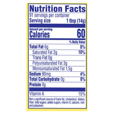 I cant believe its not butter nutrition label. I Can't Believe It's Not Butter! Sticks - H-E-B They are made with good fats from plant-based oils and contain omega-3 ALA. Specially created to ... Butter, Margarine & Other Spreads - Compare Your Options Apr 12, 2021 · I Can’t Believe It’s Not Butter (original): 1 Tbsp, 60 calories, 2g saturated fat, 3g polyunsaturated, 1.5g monounsaturated. Imperial margarine: 1 Tbsp, 40 calories, 1g saturated fat, 2g polyunsaturated, 1g monounsaturated. Light Butter & Margarine. These can be a good choice for those who are limiting calories or fat. Find I Cant Believe Its Not Butter Lite Calories & Nutrition... Search MyFitnessPal for calories, carbs, and nutritional contents for I Cant Believe Its Not Butter Lite and over 2,000,000 other foods at MyFitnessPal. LOG MASUK Daftar. Perihal. Makanan. Senaman. ... Lemak: 6g • Protin: 0g. 60. Margarin. I Cant Believe Its Not Butter, 1 tbs. Kalori: 45 ... I Can't Believe It's Not Butter Nutrition Facts & Calories -... Has high calorie density - this means that the amount of calories you are getting from an ounce is high (0.19 cal/oz). Rich in vitamins and minerals (7%/cal) - a good source of Vitamin K and Vitamin A. Contains a high amount of risky components that may include saturated fat and sodium (0.03%/oz). Relatively high in saturated fat (54% of DV/100g). This item has no fiber content (0% of DV/100g).